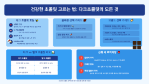 - 수제 다크 초콜릿: 최근에는 수제 초콜릿 전문점에서 다양한 종류의 다크 초콜릿을 판매하고 있어요. 특별한 맛과 디자인을 원한다면 수제 초콜릿을 선택해 보는 것도 좋은 방법이에요.