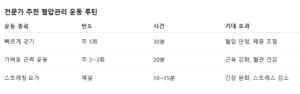 표 제목: 전문가 추천 혈압관리 운동 루틴